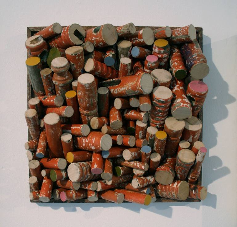 Painted Chair, 2009 is made from painted wooden chair-legs from one chair, sawed by hand into multiple lengths. The material was sourced without monetary transaction and without accessing so-called ‘virgin material’, but by invitation on a social networking site for the appropriation into an art ob...