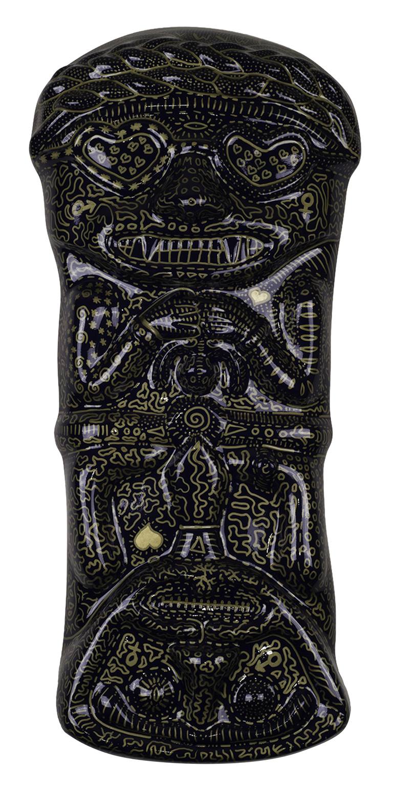 This blue wall sculpture can be hanged from the part of the woman or the part of the man. It is inspired in an ancient sculpture of the Pre-Columbian culture of San Agustin of the country Colombia (South America). It is from a series I called "Neo Colombinos Agustinianos" that means "New-Columbians"...