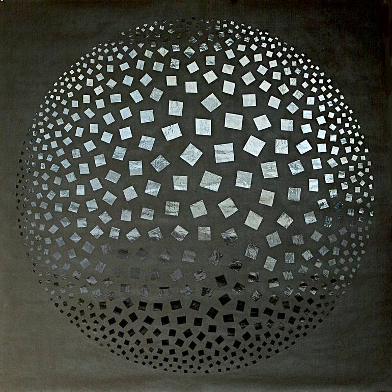 Our planet is a happy place to be. It is where we have fun. Unequal gloss square areas are arranged on a smooth, matte finish surface to create the illusion of a sphere. This piece is cast from a mold with black Urethane rubber and fabric backup for strength. (Edition of 40, next to acquire is 3/40...