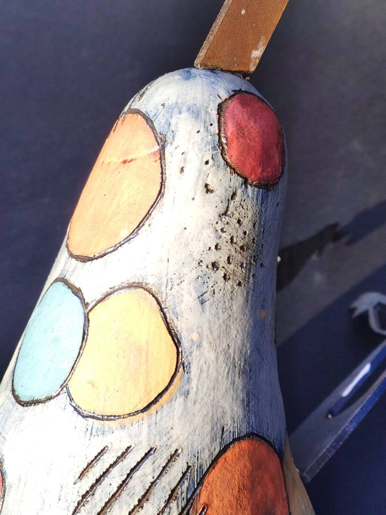 We are a creative couple from Ukraine. Nadiia Otriazha and Fedir Bushmanov have been working together since 2018. They have exhibited their work in Ukraine, Poland, Germany, and Croatia. They created a museum in Dnipro (Ukraine). They are now making sculptures with bright colors and multi-layered finishes. They explore how colors affect perception, creating volume, dynamics, and new visual effects. Their experiments with color give their sculptures a unique character and emotional depth. Nadiia is a curator and painter.