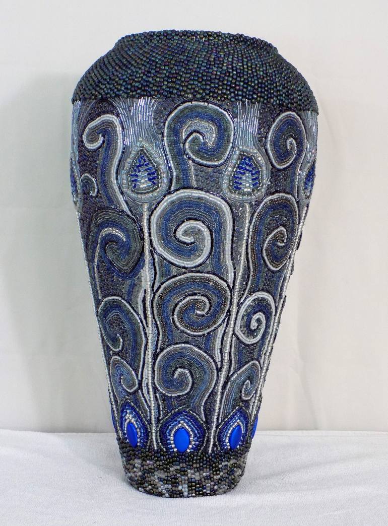 This is the first of a series of pieces on mythological creatures that I have in my sketchbook. Phoenix Vase is intended to convey the dramatic moment that a phoenix is born from smoldering ashes. The blue flame shapes at the bottom feature large reflective beads that will flicker in response to ...