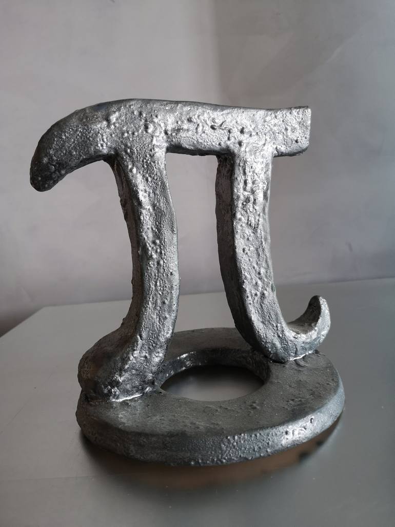 Scultura di design moderno creato ispirandomi al grande matematico Archimede. Il PI greco ti porta immediatamente dentro al mondo matematico-scientifico. In modo poetico e simbolico. La regola del pi greco 3.14 diventa scultura. Maria Elena Buemi