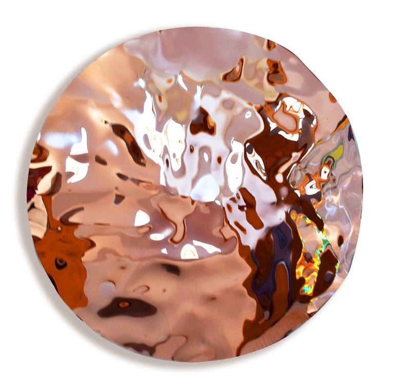 Fed up with flat shapes and paintings? Rose Gold color that is moving with the viewer's eye with beautiful reflections reminding of water. The Artwork is Unique, hand formed. Could hang in any way. It's light and bright, highly reflecting surrounding objects. This finishing touch would easily trans...