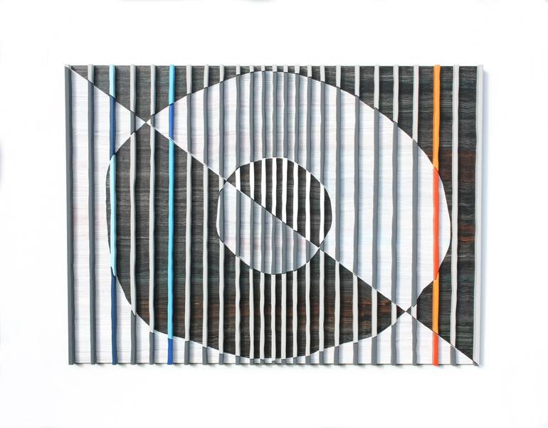 Title : Polaris A free form circle within a circle is at the heart of this piece. The strong diagonal cut from corner to corner is employed to direct the light and dark along with the cut line of the circle shape. The verticals of wood have been shaped by sanding to give the piece some fluidity. T...