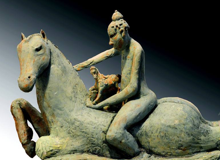 The story of the Sea King's daughter appears in stories worldwide, from ancient Greece to Japan. Here the horse represents the sea and Poseidon's Daughter carefully holds a small horse, the talisman of the sea king, as she rides. This modern, allegoricl sculpture draws inspiration from ancient folk...