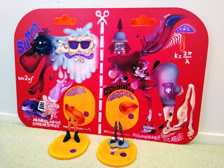 QUANTUM FRONTAL LOBE WAVEFORM KAWAII DUCK BIL PLATY PI POPLOCKING WAX LEG BATTLE ROYALE. By William BIL Anderson JR 2021. (Wax Resin Statues) SUPERFLAT ART INSPIRATION Homage to TAKASHI... Inspired by: Psychedelic poster art... And pop culture mini Andy Warhol reference. Breakfast cereal box art......