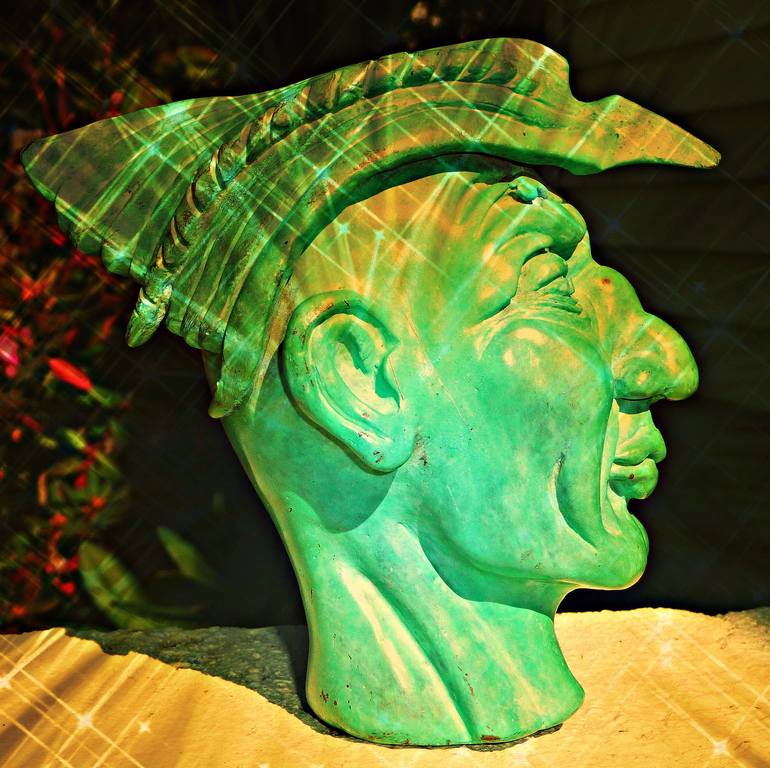 QUIQUID CAPIT -- whatever it takes. 1 of 10 bronze. One of a series of imagined portraits influenced by Japanese and Greek and Roman and Celtic.