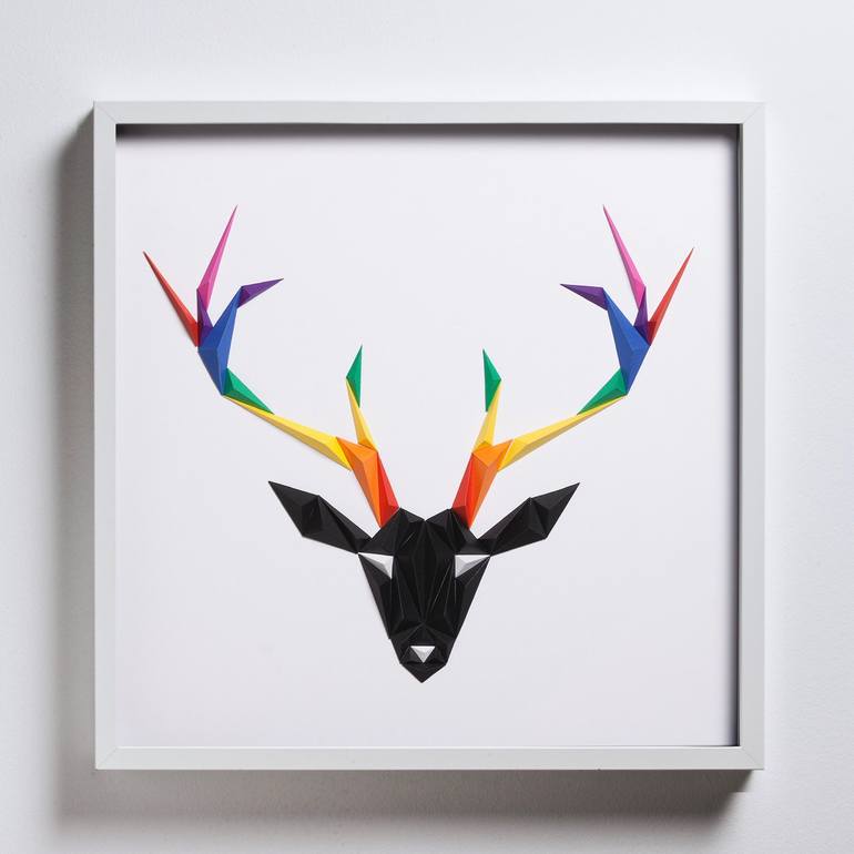 Based in Istanbul, paper artist Tayfun Tinmaz is graduated from Marmara University Faculty of Fine Arts Painting Department. Inspired by nature, tropical bird series are among the artist’s early works. Tayfun explores color contrast and harmony of forms found in nature. The artist transforms paper material into a powerful painting tool, prioritizes the relationship between color, dimension and piece as a whole. The design is usually located in the center of a minimal plain background with wide spaces on sides. Pyramid shaped paper pieces comes together and creates the design itself.