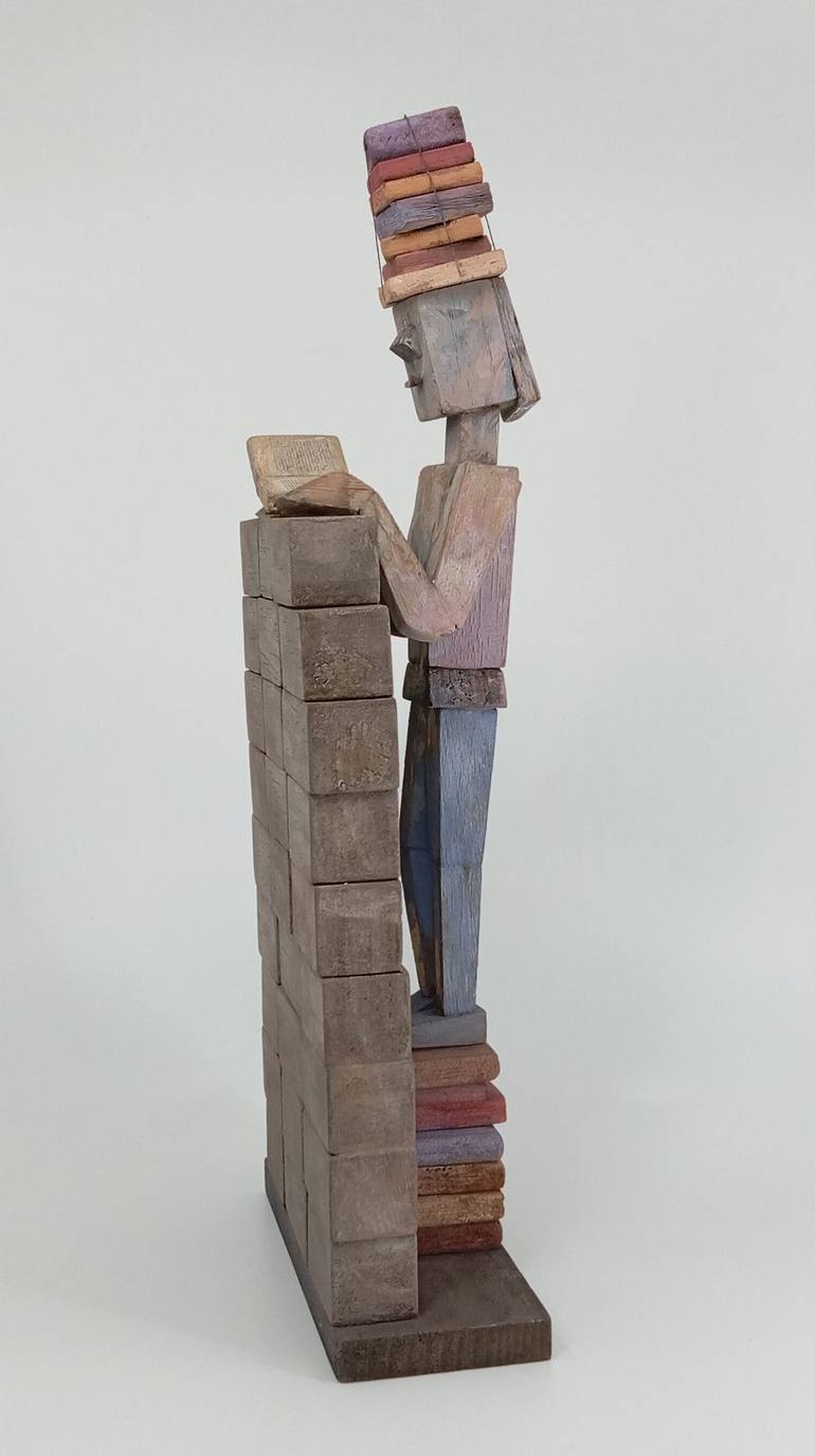 « I try to ensure that my creations inspire moments of reflection and connection with the world of books.» The central themes of his pieces revolve around reading. José Manuel, through his figures of geometric lines in unrepeatable scenarios, seeks to transmit various emotions with the reader. His creative compositions are mainly based on wood. Hello! I'm José Manuel, a passionate sculptor from Madrid, and I'd like to share a little about my artistic journey and the essence of my work. It all began thanks to a small but powerful book, "My Testament" by Auguste Rodin, which awakened a profound creative impulse within me. Since then, I've found sculpture to be the perfect medium to express what is often imperceptible. In my early work, I drew inspiration from ancient art, creating bas-reliefs that pay homage to ancient cultures. Each piece is a journey through the aesthetics, symbolism, and mythology of those times. Throughout my career, I have had the opportunity to hold several exhibitions and manage a gallery in Madrid, an experience I greatly value for the direct contact with the public and other artists. Over time, my work evolved towards philosophical sculptures, initially in acrylic resin on methacrylate. I have participated in group exhibitions, most notably receiving a sculpture medal at the 110th anniversary of the Spanish Association of Painters and Sculptors. Currently, I continue to explore this line of work, but now I am working with wood, which allows me to connect even more deeply with the essence of my creations. In my works, I seek to convey an intimate language between form and profound feelings, a reflection of my inner self and a search for answers to the great questions of human existence. As John Anthony West said, “Art is not only meant to be enjoyed but to illuminate.” My sculptures explore themes that deeply move me. They are based on the journey each of us takes within ourselves, the inner struggle between the material and the spiritual, the capacity to rise again after falling, fragility and grandeur, and the relationship between the invisible and visible worlds. My greatest wish is that my creations touch the hearts and souls of those who contemplate them, illuminating their lives in some way. Thank you for joining me on this artistic journey!