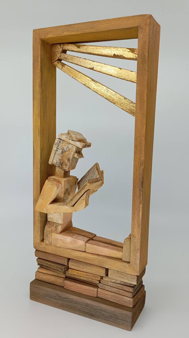 « I try to ensure that my creations inspire moments of reflection and connection with the world of books.» The central themes of his pieces revolve around reading. José Manuel, through his figures of geometric lines in unrepeatable scenarios, seeks to transmit various emotions with the reader. His creative compositions are mainly based on wood. Hello! I'm José Manuel, a passionate sculptor from Madrid, and I'd like to share a little about my artistic journey and the essence of my work. It all began thanks to a small but powerful book, "My Testament" by Auguste Rodin, which awakened a profound creative impulse within me. Since then, I've found sculpture to be the perfect medium to express what is often imperceptible. In my early work, I drew inspiration from ancient art, creating bas-reliefs that pay homage to ancient cultures. Each piece is a journey through the aesthetics, symbolism, and mythology of those times. Throughout my career, I have had the opportunity to hold several exhibitions and manage a gallery in Madrid, an experience I greatly value for the direct contact with the public and other artists. Over time, my work evolved towards philosophical sculptures, initially in acrylic resin on methacrylate. I have participated in group exhibitions, most notably receiving a sculpture medal at the 110th anniversary of the Spanish Association of Painters and Sculptors. Currently, I continue to explore this line of work, but now I am working with wood, which allows me to connect even more deeply with the essence of my creations. In my works, I seek to convey an intimate language between form and profound feelings, a reflection of my inner self and a search for answers to the great questions of human existence. As John Anthony West said, “Art is not only meant to be enjoyed but to illuminate.” My sculptures explore themes that deeply move me. They are based on the journey each of us takes within ourselves, the inner struggle between the material and the spiritual, the capacity to rise again after falling, fragility and grandeur, and the relationship between the invisible and visible worlds. My greatest wish is that my creations touch the hearts and souls of those who contemplate them, illuminating their lives in some way. Thank you for joining me on this artistic journey!