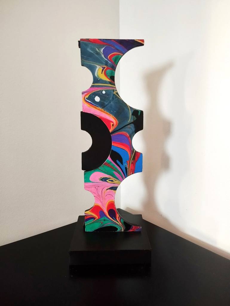 Original artwork, signed, 2025 Edition : 1/1 Wood, acrylic painting & ink, satin varnish Wooden base, painted black and varnished