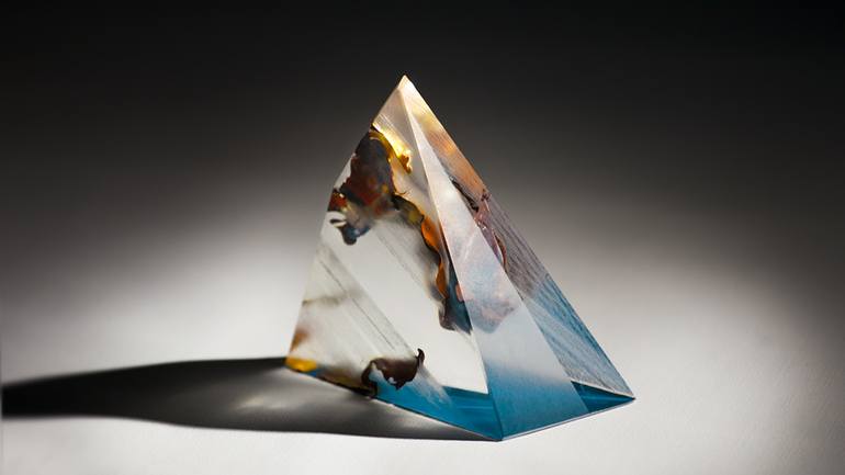 Swartz suspends sculptural forms of paint within clear prisms of hand cast acrylic glass. The surfaces of these abstract sculptures have been selectively clarified, allowing internal elements to be concealed and revealed. There is no single or immediate way to experience the piece. Every angle expos...