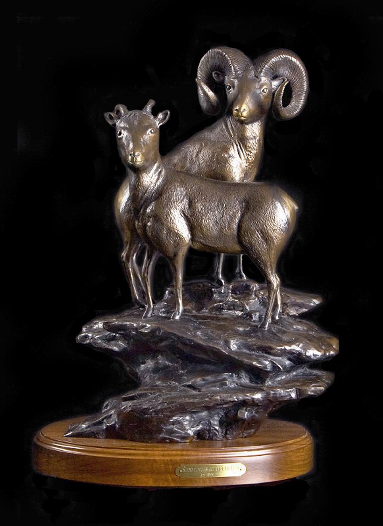 20" x 11" x 9" 50.80 cm x 27.94 cm x 22.86 cm My love for nature inspires me to research and test my ability to capture the beauty, form and expressions in my wildlife sculptures. While traveling to Arizona for a weekend show I noticed a pair of rams on top of a crest. I stopped and took multipl...