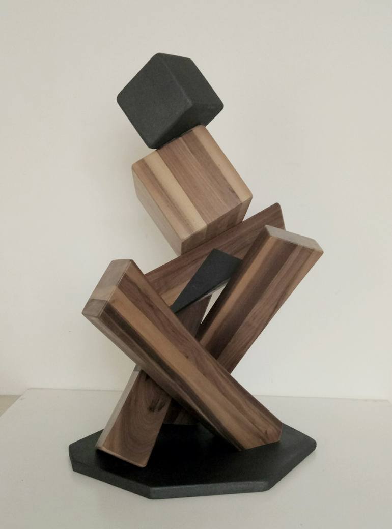 Artistic sculpture in solid walnut wood and metal effect paint; finish with transparent water-based varnish. It is an object that creates a unique atmosphere in the environment in which it is located and, if illuminated, creates suggestive shadows; it is a unique piece. Brand A + D art