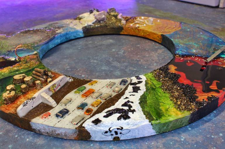 This artwork is a treatise on the current climate crisis. The artwork features the causes of global warming as well as the effects and also suggests some of the things we can do to help. Causes of the climate crisis include the burning of fossil fuels: the artwork depicts a traffic jam of cars and ...