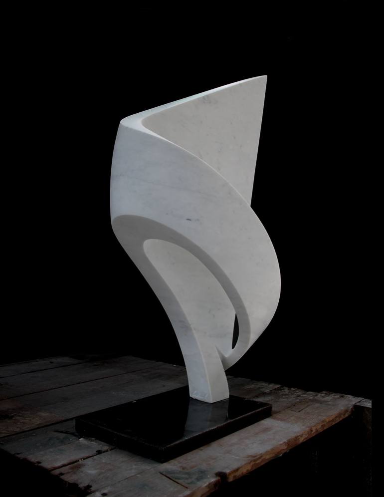The sculpture was made from a block of white Carrara marble, while the base is in iron so as to make it stable. Ripensamenti represents the attempt to chase after an idea that arises, but due to the artist's difficulty in transferring it into the material it escapes, folding back on itself to return...