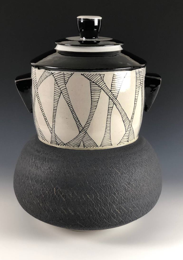 This is one of a series of large covered jars inspired by ritualistic containers and trophies from antiquity. I've done a contemporary interpretation and changed proportions while trying to maintain the power inherent in the piece.