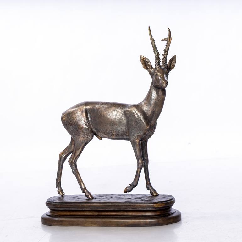 The artwork depicts the figure of a roe deer. Krasimir Krastev’s works require within 4 to 8 weeks to make. Every piece of his fine sculptures goes through several stages of creation – modelling, casting in metal and refining. A distinguishing feature of a great part of his hand made sculptures is t...