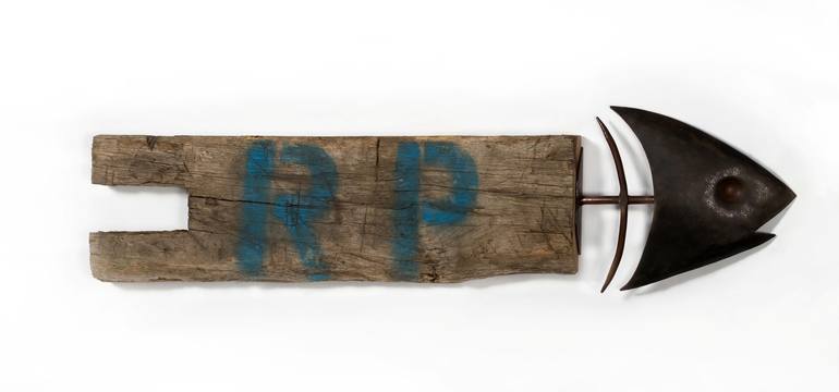SCHOOL OF FISH/OUTCAST#1WOOD AND IRON 110X30 CM 1800$ wall piece.