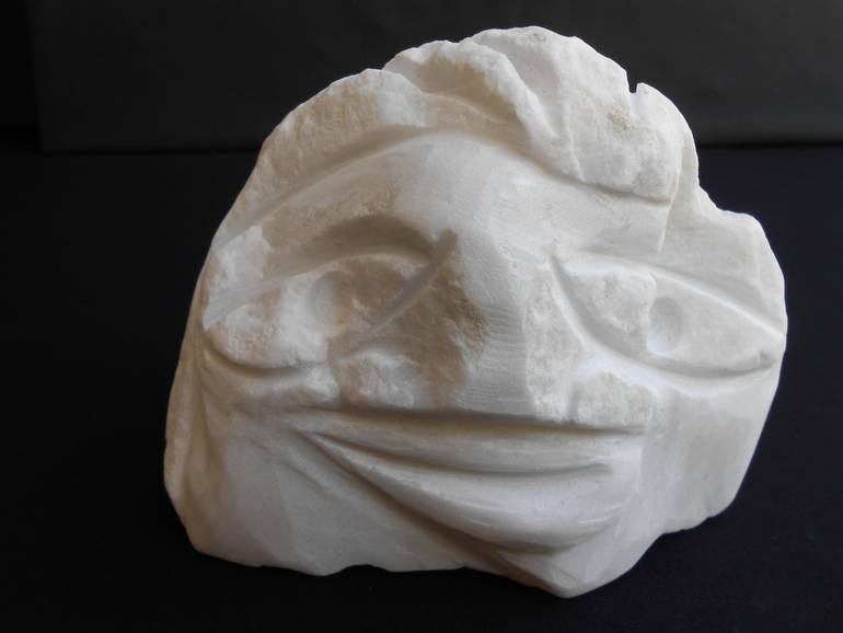 SENSUAL IN WHITE, Original sculpture, a direct carving from white Alabama marble which was chosen for its basic, dependable and enduring qualities. I, as an artist, choose stone as my medium in my position as artistic intermediary between earth and mankind, following the path begun with the cave art...
