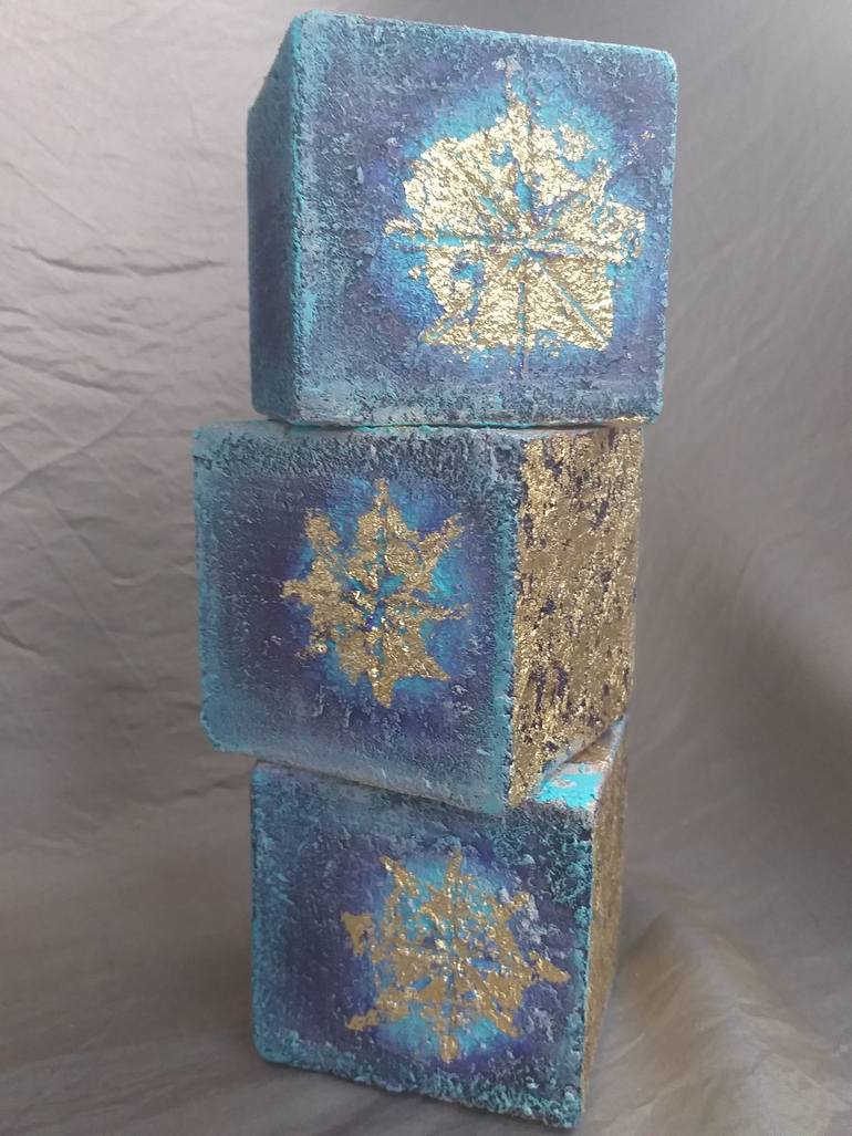 This playful artwork represents a favourite human activity: a game of imagination and creativity. Combining each image of this 3 pieces artwork, the viewer can make up different stories. This is an interactive piece, consisting of three wooden cubes, each cube painted with a different image on each ...