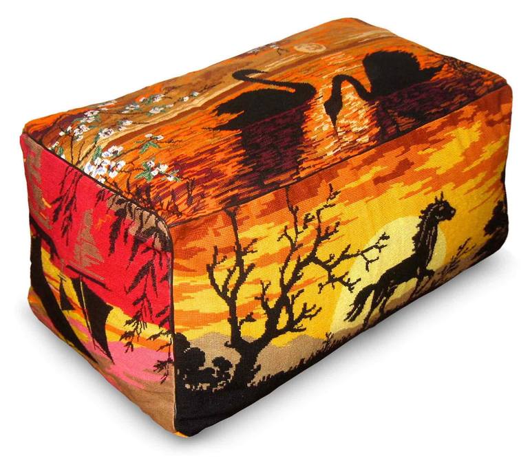 The distinctive and precious collection of CUBELIN seating poufs is entirely handembroidered, using former wallhangings of 20th century tapestries with a comfortable microbead filling. See more at