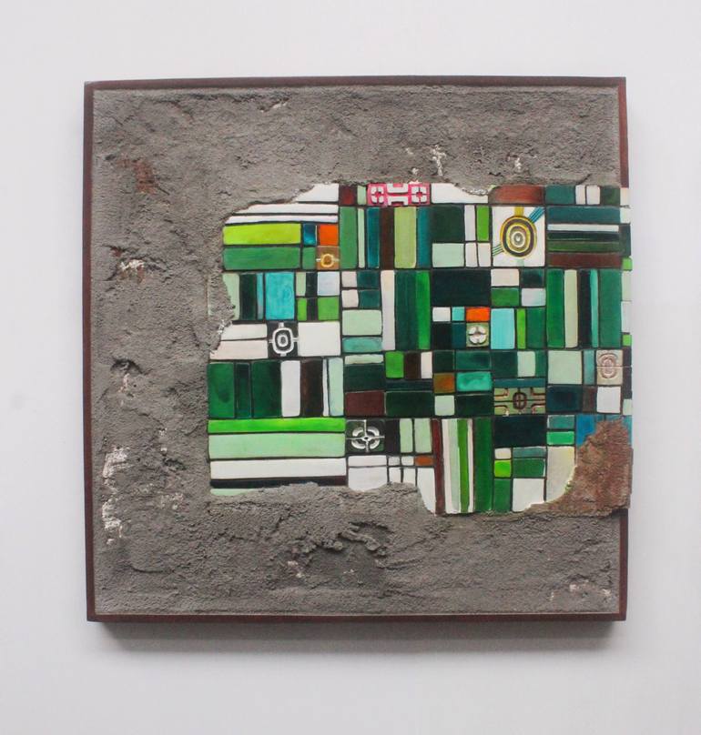 ~Sentimental~ A wall sculpture of textured concrete with carved wood and acrylic. " When I was a kid, the Rubik Cube was my all time favourite game. Is it yours too? I came upon it one day and it brought back so many memories. I couldn't resist and created this artwork called ~Sentimental~ "