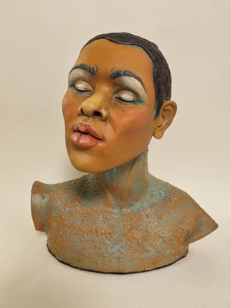 One-of-a-kind hand sculpture by Edna Dali, crafted from clay and fired at high temperatures to capture both fragility and strength. A graceful, one-of-a-kind ceramic sculpture radiating calm and inner peace. The figure’s closed eyes and relaxed posture invite stillness and reflection. Hand-sculpted...