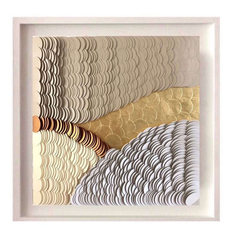 Juliana Bernal Jaramillo. She began her Industrial Design studies at the Universidad de los Andes in Bogota (Colombia) and finished at the Instituto Europeo di Design in Madrid (Spain). From an early age she felt the need to express herself creatively, Juliana found different materials like metal acrylic and paperboard with these materials she starts 3D experiments. Liliana Jaramillo, her mother was textile weaver and the most influencer person on this road. Since her childhood years, she spent hours in her mother's workshop playing and watching how through repetitions and sequences a thread was converted into meters and meters of fabrics and tapestries made on manual looms and with natural fibers. These first experiences are the connection between her later work and the influence of the great Colombian artist Olga de Amaral who for decades has elaborated amazing structures through play with textiles or Edgar Negret whose sculptures are made with a personal point of view. Some viewers can find similitude with the 3D pieces from Venezuelan artist Jesús Rafael Soto (R.I.P). Juliana´s newest works of art and Soto pose a game of perspectives that introduce the audience to a kinetic sensation. Juliana was introduced to the adventure of paper art as a consequence of her early process in her childhood workshop but also as a result of her own experience with her son. She practiced different techniques and materials with him who helped him with his concentration because of his high IQ made him extremely anxious. What began as family therapy became Juliana's vehicle for artistic expression. She immersed herself in the geometric possibilities of paper and found her own language there. “My son was born in a square world. I always believed in unbreakable routines. At established schedules with structured activities. Over time and thanks to the work we did, we forced ourselves to out of the box realizing that these routines could change without the world collapsing. I discovered that human beings get used to variations and adapt to changes because we need to move on ”. - Juliana Juliana's first geometric sculptures are made up of angled figures, peaks and vertices that repeated modularly that summon the routine, the repetitive and the everyday but which manages to take the viewer out of the predictable sequences. “My artwork is clearly marked by languages that at first seem different but which are saying the same thing and are speaking to each other.