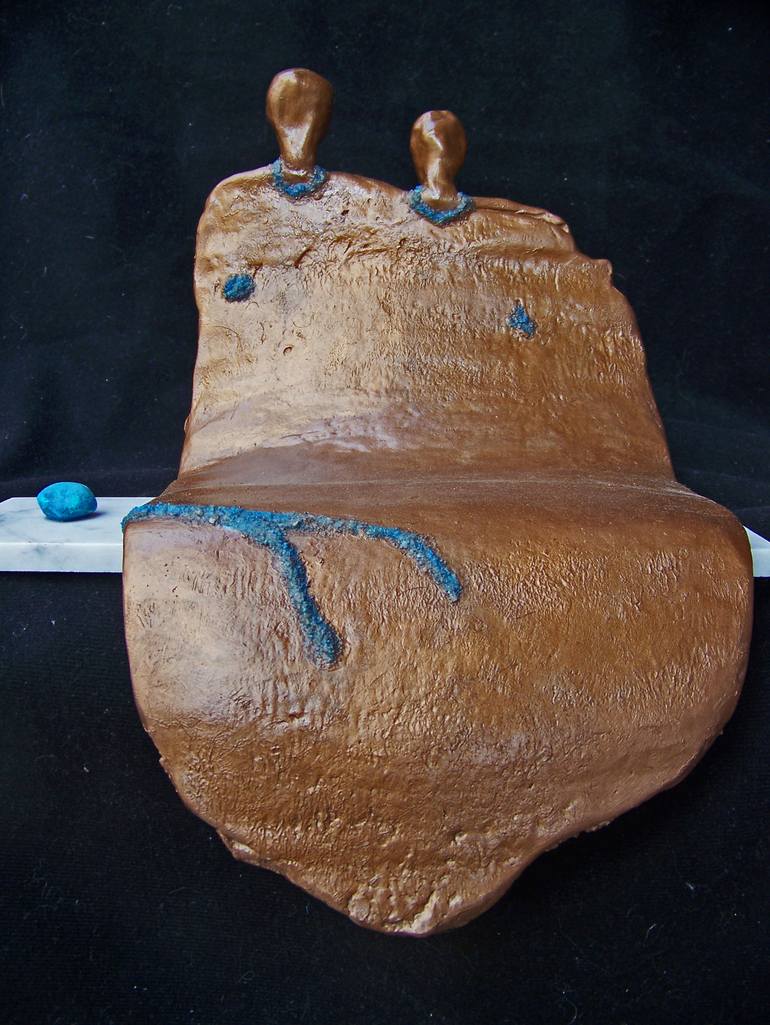 From the Shaman Series---Hand-built, slab-formed fired stoneware original. Each is 1/1. Metallic patina mounted on Marble base.