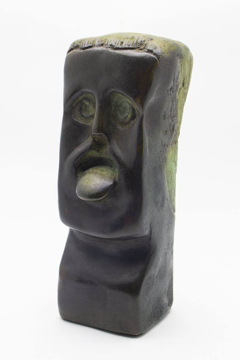 A very beautiful sculpture in brass with black and green patina. Shape, face with strong features.