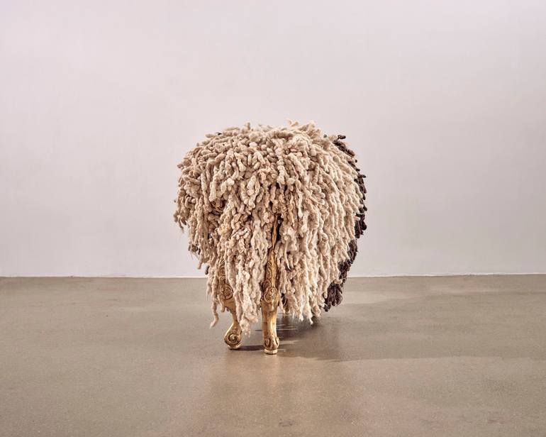In 1999 I made a wall hanging with a horizontal baroque wooden frame. I took it from a so-called kitsch couch. The leftover legs were standing against each other in my studio. I saw a sheep in them. The Museum of Natural History in Leiden had asked me to make an exhibition on three floors of their n...