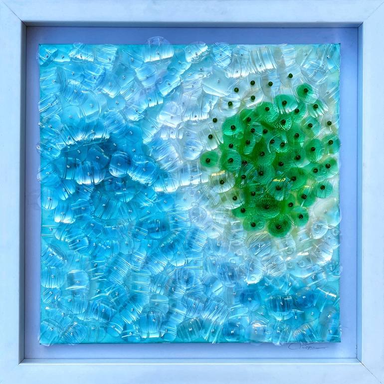 A unique mixed media wall sculptural artwork, done on canvas with a beautiful texture of repurposed plastics. Nature and ocean has been my major source of inspiration, I often try to recreate the structures and patterns found in these natural elements. This artworks is inspired by the aerial view of...