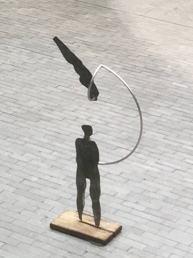 what we achieve if we work together... Bronze figures jump through the air, hold in place by stainless steel rods.