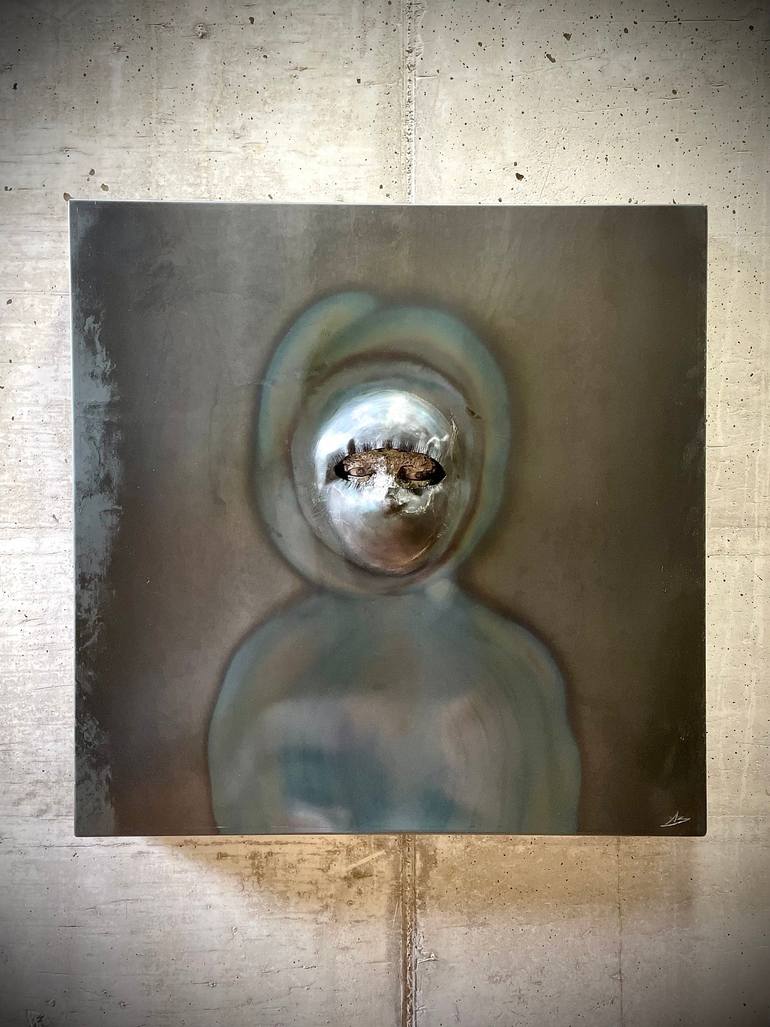 Strong conceptual work, hand carved by shaping a metal plate. The eyes are the mirror of the soul, and in this gaze transpires all the 'emotionality of the artist, locked up in a work of art.