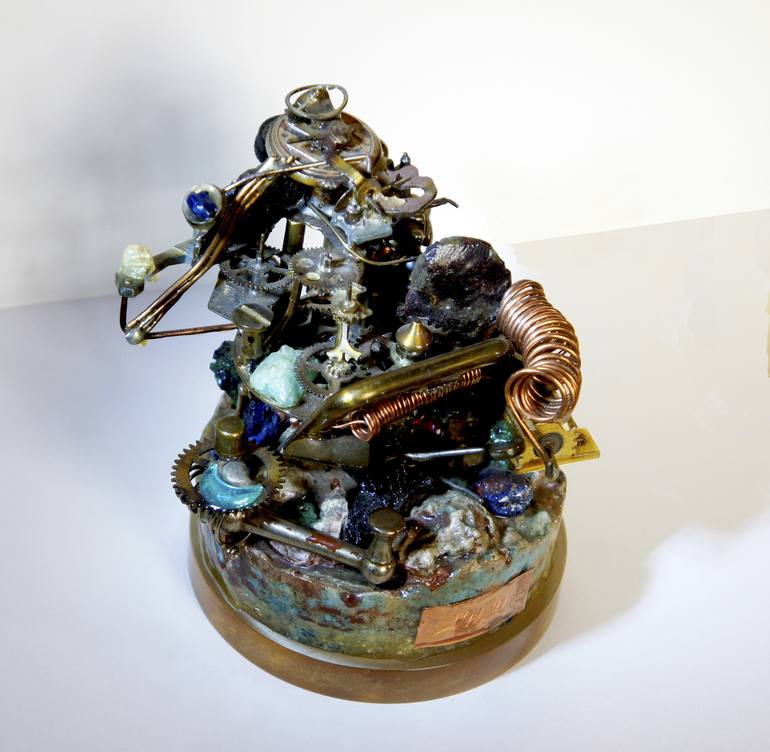 Sculpture in mixed média, resin, stone, copper, 13 cm height, abstract