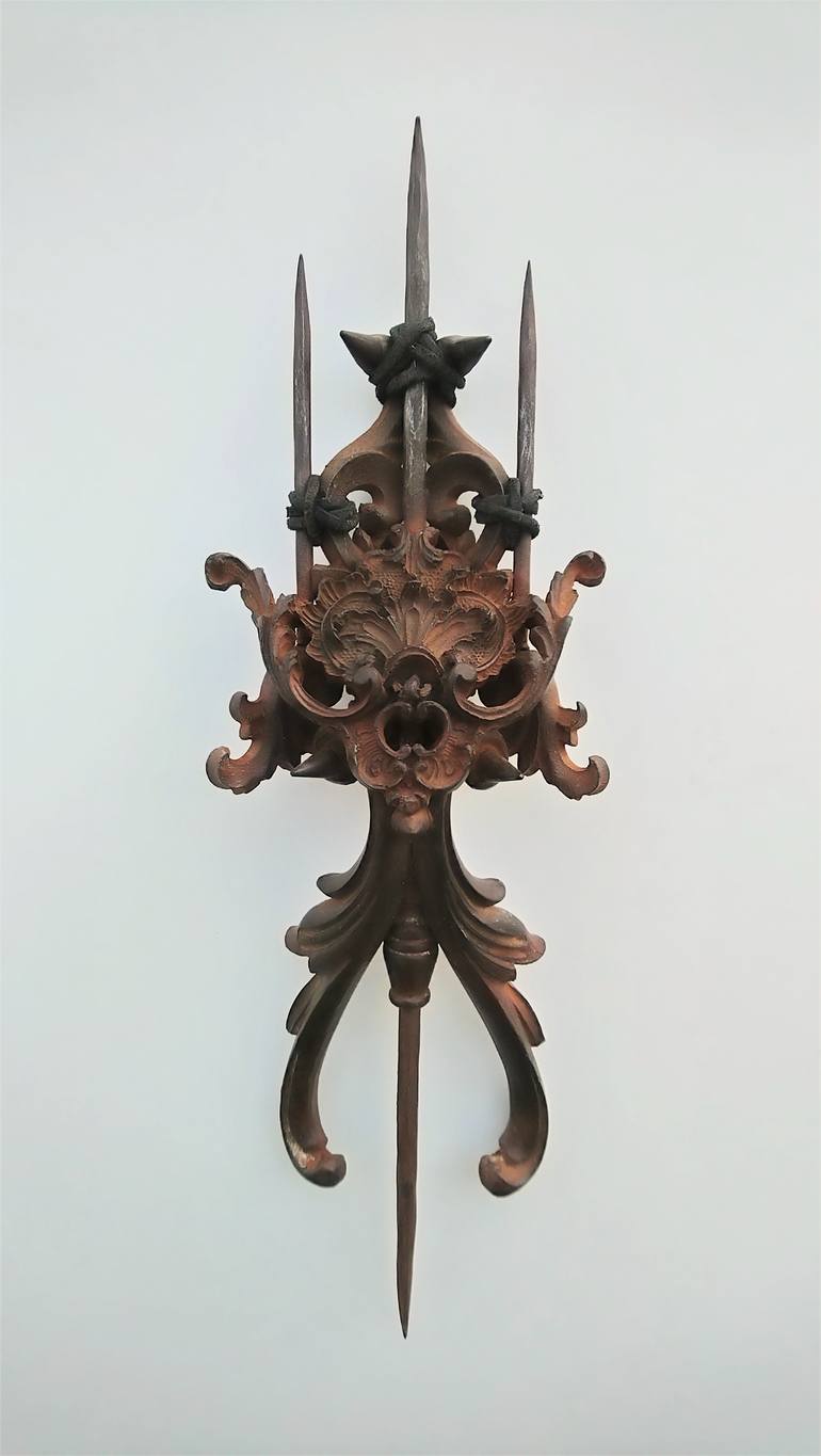 Seamus Moran uses combinations of seemingly incompatible ideas to create sculptures inspired by childhood memories of museum visits, fossils, and armour. An industry background in mould-making ensures that his work is convincing & meticulously constructed. By casting knots salvaged from dead trees he has been turning them into complex organic abstracts for many years. His recent work has focused on more figurative themes, often with a strong social comment. They are different to his previous body of work, but retaining the realism and the feeling of museum exhibits from a parallel universe. Through the questioning and the rethinking of familiar objects, he shows his own insights on the human condition with his dark, slightly humorous sculptures. Seamus was born in 1963 in Burton on Trent. He graduated with a Ba (hons) in Ceramics with Glass from Birmingham polytechnic in 1984 and went on to work in the pottery industry in Stoke on Trent as a sculptor and mould-maker, continuing and developing his skills ever since. He started exhibiting his own sculptures in galleries in 2002. His work has been shown around the UK and in 2008 won the People’s choice award at The National sculpture competition at Liverpool’s Bluecoat 2 gallery. In 2013 he was shortlisted for the Threadneedle prize at The Mall galleries in London for his work “Urban Burka”. “Harness” won best of show at the Passion for Freedom festival at the Embassy tea gallery in 2014 and has since been displayed at the Royal Armouries sites including a three month residency at The Tower of London. His work ”Decade” won best installation award at the NOAC in 2106. He has been a member of The Royal British Society of Sculptors since 2016.