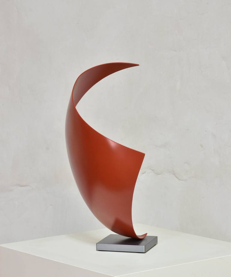 The "Spinnaker R40" sculpture is made of steel, hand drawn and spray painted. The dimensions of the integrated support are also in steel: 11x11x1.5 cm. All protected by satin varnish. Weight: 2.7 kg. With protective pads. The signature is stamped into the mass underneath. Delivered with a full cert...