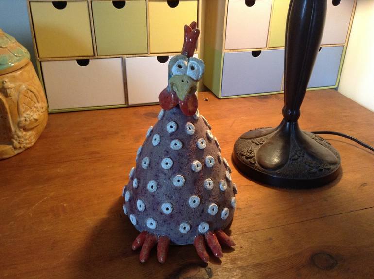 Spot the Guinea Fowl . Ceramic stoneware . Glazed and the use of oxides have been used fore this sculpture.