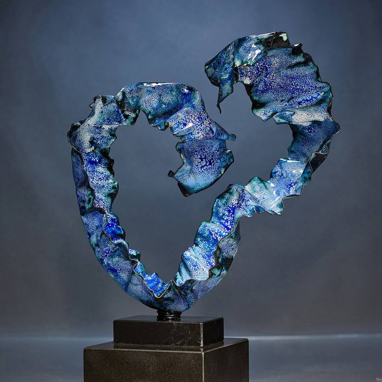 The bohemian artistry of being able to form metal into shapes and textures allows me to create sculptural, yet fluid works. Finished with the beauty and elegance of glass, the depth of color emerges to radiate simplicity and complexity. The shape and texture of each work of art creates a visual tap...