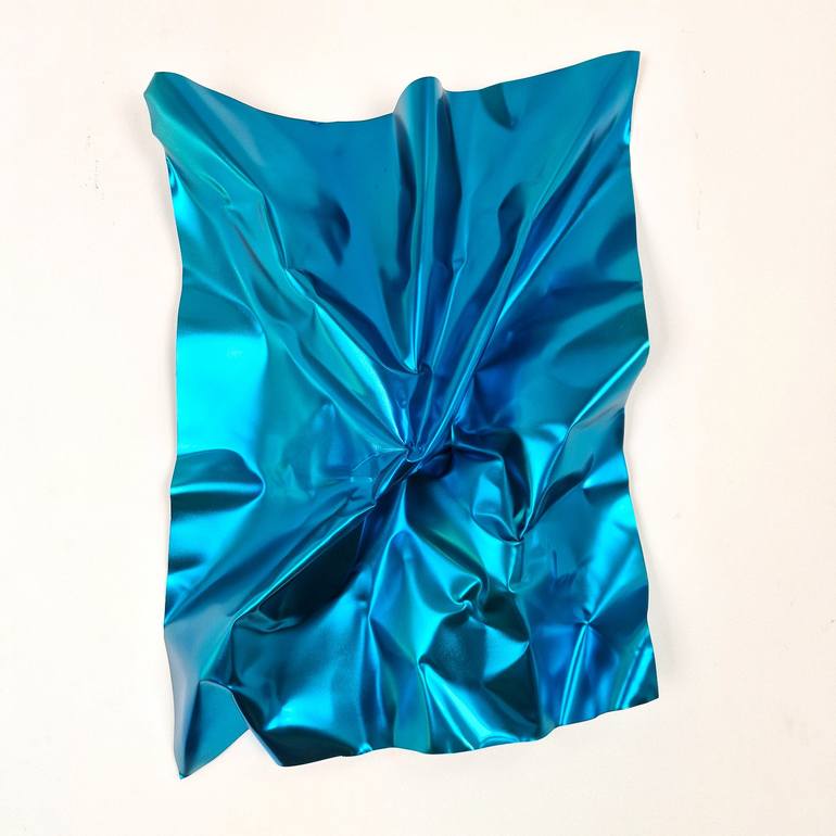 He creado esta obra con acero inoxidable, transformando el metal en una silueta que evoca la suavidad de la seda y la profundidad del azul celestial. Refleja mis emociones más fuertes, el contraste entre la fortaleza y la delicadeza, diseñada para ser un objeto mural o una escultura al aire libre. E...