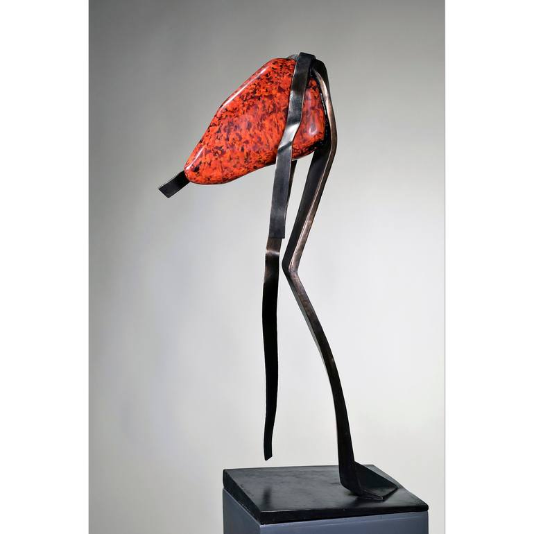 André van der Linden (1945 Amsterdam). André studied for some time at the Rijksacademie in Amsterdam, but is self-taught as a sculptor. He has been working as a sculptor since 1967 and settled as such in Friesland in 1972. Until 1978 André mainly worked in wood, which was sometimes painted in primary colours. Subsequently, a combination of materials was often used. At first wood was combined with stone, until the wood faded into the background and stone sculptures appeared, sometimes in combination with ferrocement. Working with ferrocement, the core of which is an iron construction, eventually led to the fact that the cement was omitted and the stone statue was combined with stainless steel. The white of the steel did not always combine with the idea to be executed, so that the dark bronze was added as a new option. Gradually, the stones disappeared from the statues and there are now combinations of steel and bronze, where glass is often a colorful addition. Over the course of 55 years, there has also been a change in starting points. Initially, images appeared with a mainly inner strength, later a transition was made to a much more sober visual language and in the following period we now see greater expressiveness again, in which what moves and sets the individual in motion is a recurring starting point. . A further abstraction of these moving figures offers the viewer freedom of interpretation. In the words of Huub Mous: Nothing is as obvious on closer inspection as it seems at first. This certainly also applies to the images of André van der Linden. The artist who lives and works in Friesland has built up an impressive track record. Many of his sculptures have been given a permanent place in public space. André van der Linden's work invites reflection. Although the artist derives formal starting points from geometry and stereometry, his images escape cool calculation and law. Additions that seem incongruous at first glance act as counterpoints to constructivist elements. The images derive their visual tension from this duality. During the process of combining and assembling, shaping and deforming, the artist works with contrasts. He gives shape to processes of change, to cycles that determine the natural course of events and to human power and inability to influence them.