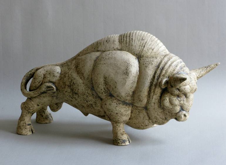 Chamotte clay sculpture. Hand modelling. Symbol of force and power. In ancient mythology one of reincarnations of Zeus.