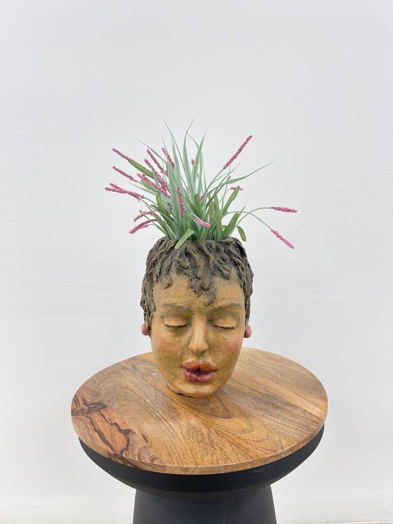 Crafted in clay during a focused studio practice, this head vase by artist Doris portrays the visage of a Hispanic woman with thoughtful detail and cultural sensitivity. By transforming the sculpture into a functional vase, Doris invites viewers to engage with the work on a symbolic level. The addit...