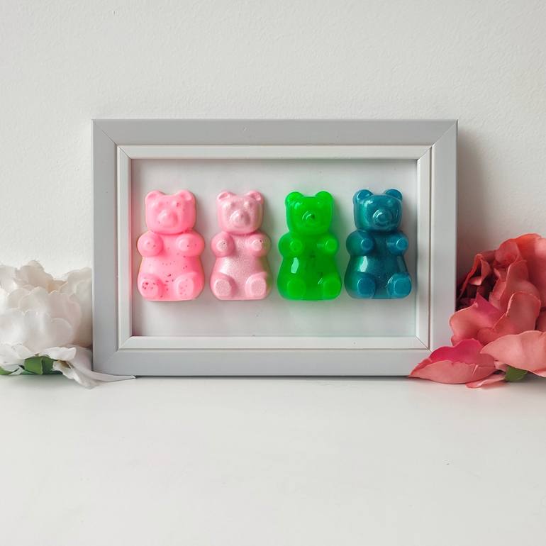 "Sweet gummy bears" New series of epoxy resin paintings/sculptures inspired by sweets All to eat with your eyes Gummy candies have always inspired me. For their colors, the reflections, the fact that they are transparent and edible "Gummy Bears," bears to hang or rest on a table or shelf Measur...