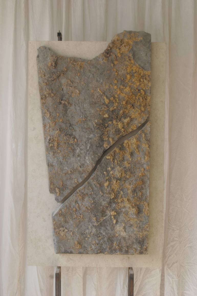 This original large solid limestone wall sculpture is one of the latest available artworks of the skillful Bulgarian contemporary sculptor Ognyan Chitakov, deeply inspired by postmodernism, dada and naturalism. Limestone is a sedimentary rock, composed mainly of skeletal fragments of marine organism...