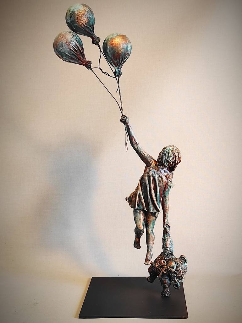 Today something completely different and romantic "Take me with you!" Clay sculpture 66x23x23cm A girl saying goodbye to childhood, flying away, cannot part with her favorite toy and faithful friend!