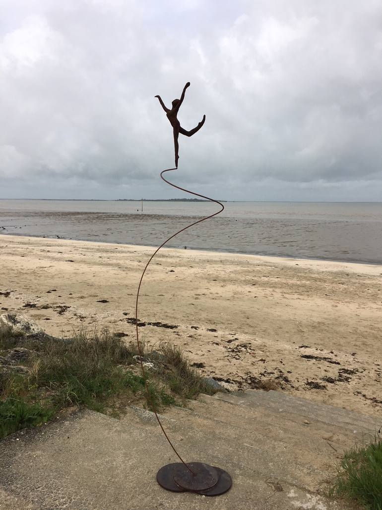 c'est une sculpture qui peut rester à l extérieur quand il fait beau et qui bouge avec le vent.elle est en résine .le socle et la tige sont en acier. on peut la mettre en mouvement .