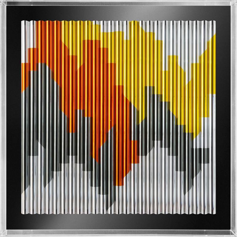 Award-winning Hamburg-based artist Burkhard Schittny first studied fashion design at the Art Academy in Bremen, then photography. His diploma - a photographic examination of Francis Bacon's work - was followed by an MA in Fine Art at Central Saint Martins College of Fine Art in London. His conceptual works "LEGACY PROJECTS" revolve around the theme of "power" and make use of the artistic genres of photography, video, performance, sound and typography. Other photo series, such as "UNTITLED", reveal Schittny's special interest in a hybrid visual world: here Schittny crosses photography, film and painting and creates visual flashbacks between image and fantasy. With the "TUBES", Schittny now enters completely new terrain: the noble wall objects made of rolled filter foils combine ideas of geometric abstraction art of avant-garde art, post-war modernism and Op-Art. The special charm of these objects lies in their renunciation of representational content. The "TUBES" have a rational-geometric structure, but are also sensual to the same degree and overwhelming in their luminous brilliance. Burkhard Schittny's new works perfectly balance minimalist condensation and dazzling illusionism.