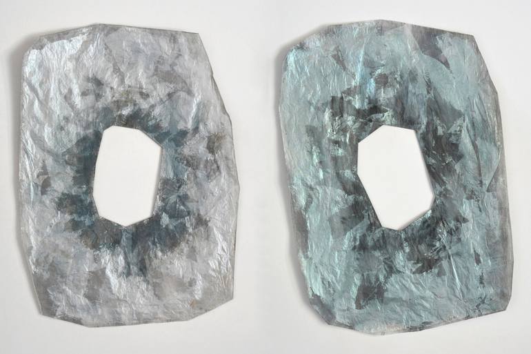 Both soft sculptures (90x65x0,1cm) transparent and ephemeral are part of a larger installation “Sic Vita Transit” They are not framed and have to be hanged flat on a wall. Sunlight reflection from the side increases the mysterious glare on the artworks. The material I used is opalescent tracing pap...